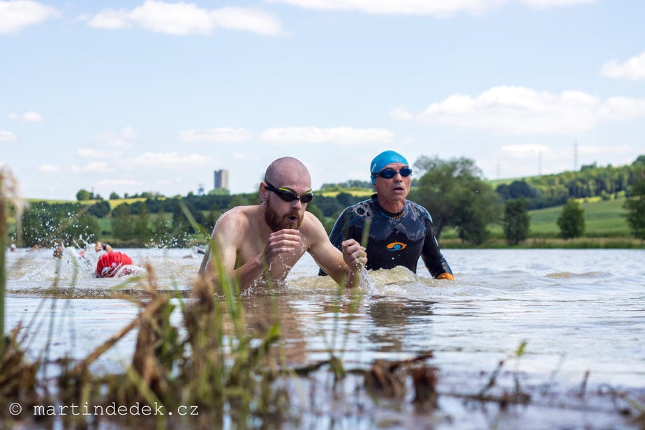 Ve 12:45 přišla na řadu hlavní kategorie. Kde finanční odměna v celkové výši 50 000,- Kč věnována našim generálním partnerem RunTo, přilákala opravdu zajímavá jména z celé republiky, ale také několik zahraničních triatletů z Polska a Estonska. Po čtvrtečních přívalových deštích nebyla voda v Brušperské nádrži opravdu v dobré kondici a připomínala spíše, než vodu hustou kávu. Přesto z vody vybíhal jako prví očekávaný vítěz plavecké části, bývalý český reprezentant v plavání Michal Rubáček, který ještě do nedávna držel Český rekord na 50m motýlek. V těsné blízkosti mu však sekundovala nadějná juniorka Veronika Holaniková, která byla loni celkově třetí a tak se řadila k favoritkám celého závodu. Ale to pravé peklo čekalo na závodníky na rozbahněné 28km dlouhé cyklo části, kde se vepředu utvořila dvojice Jiří Klíma, který v Brušperku zvítězil v roce 2011, 2012, 2015 a 2016 a Václav Klakurka, který byl v loni druhý za Slovákem Janatou. Zezadu se na ně dotahoval předloňský vítěz Hudeček. Klíma s Klakurkou spolu dojeli i do cíle cyklo části a tak bylo jasné, že o celkovém prvenství bude rozhodovat běh. V tom, ale dominoval Klíma a doběhl si pro celkově páté vítězství. Na Klakurku tak zbylo opět druhé místo. Jako třetí do cíle doběhl Petr Hudeček. Mezi ženami potvrdila zlepšující se formu Veronika Holaniková a od startu před sebe žádnou jinou ženu nepustila a s přehledem zvítězila před vítězkou z let 2016 a 2018 Barborou Šimkovou. Třetí dokončila loňská vítězka Tereza Rudolfová.
